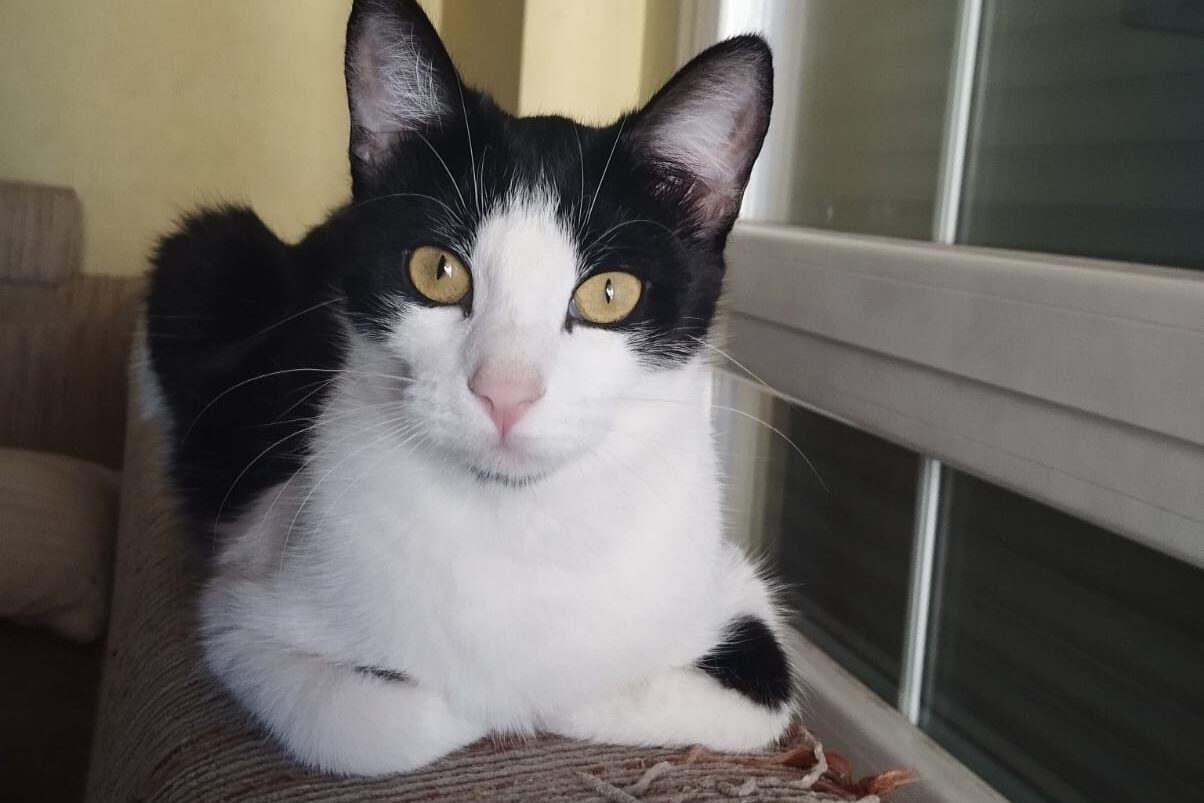 Este precioso bicolor es puro amor. Súper mimoso y cariñoso, le encanta recibir caricias, tumbarse cerquita y disfrutar de la compañía humana. Tiene una mirada que derrite y un corazón aún más grande. Si buscas un compañero dulce y achuchable, él está listo para llenar tu hogar de ronroneos.